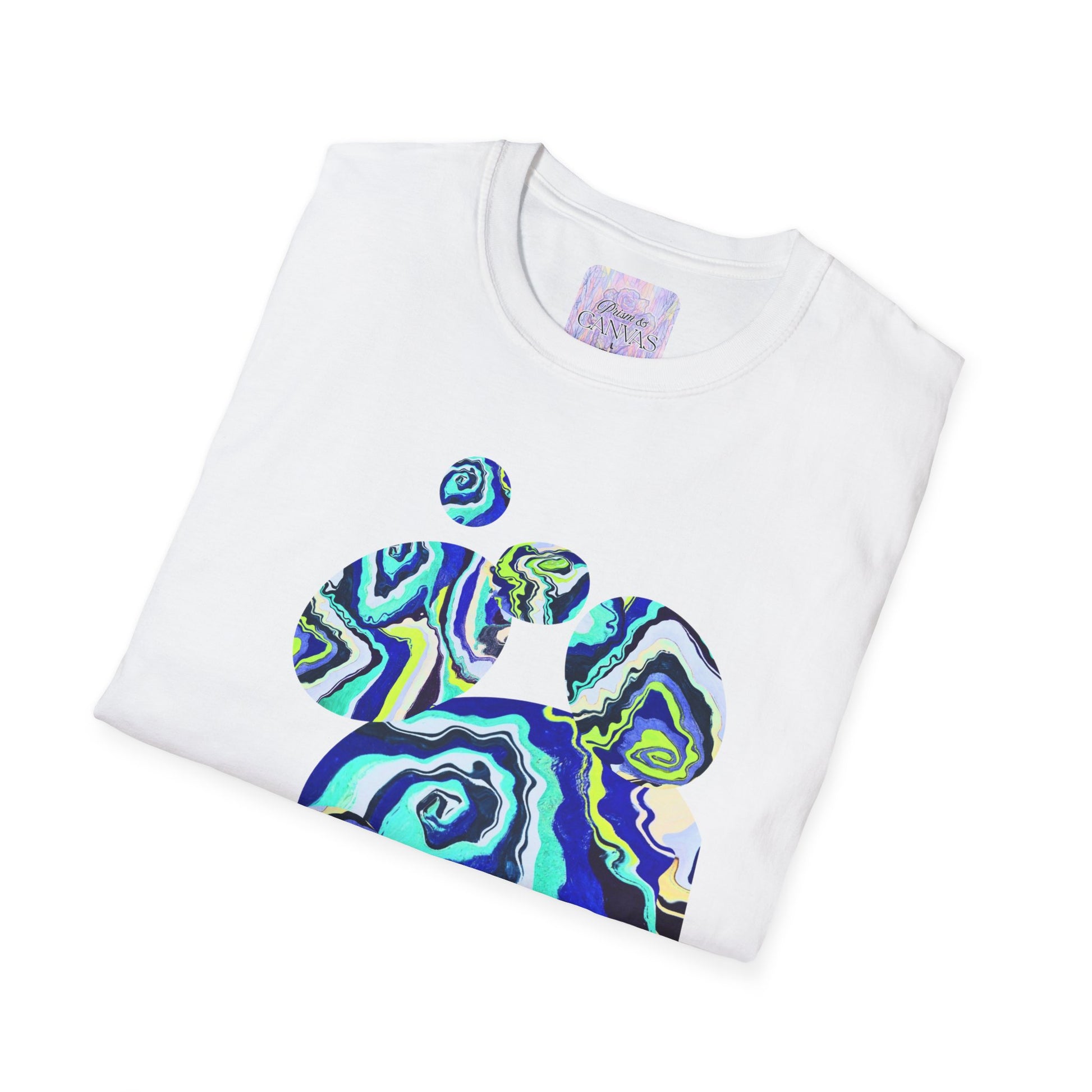 This lightweight cotton tee carries a bold, fluid print that feels like a summer tide captured on fabric. The swirling blue, teal and lime shapes move across the chest and back, like paint dropped into water and stretched into currents. Wear it when you want to bring effortless color into your day — whether you’re wandering the boardwalk, sketching in a café, or meeting friends for a laid-back show. The crew neck and classic fit make it easy to layer or wear alone; the soft ring-spun cotton keeps the print vivid while staying comfortable long after the sun sets.