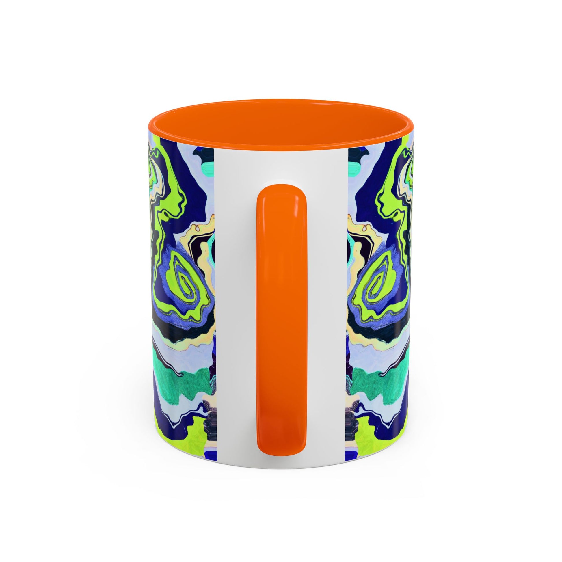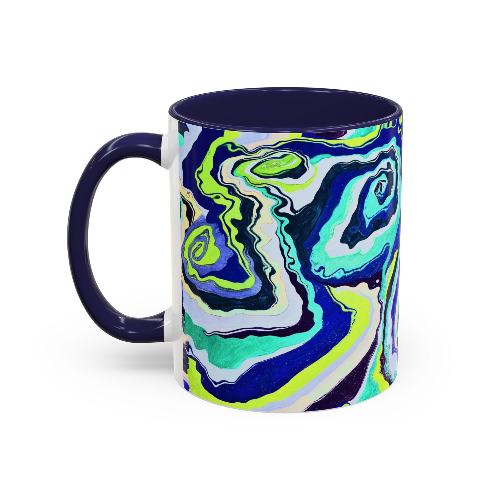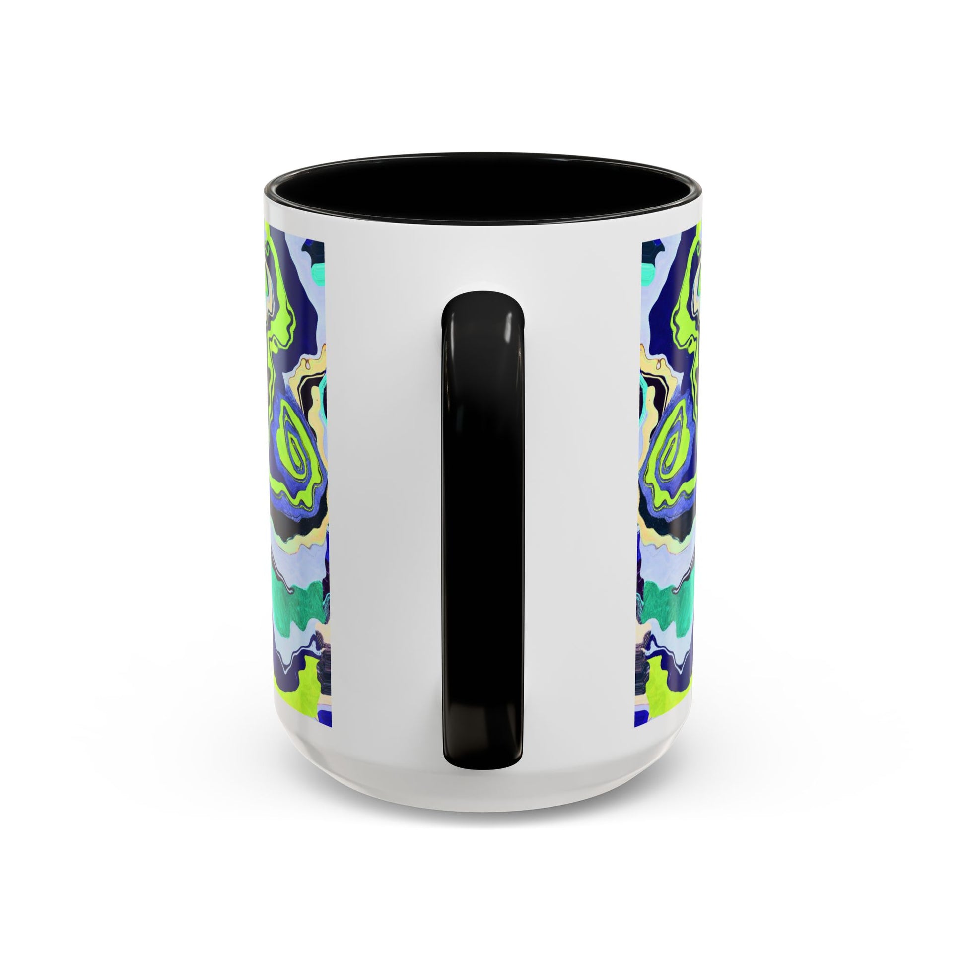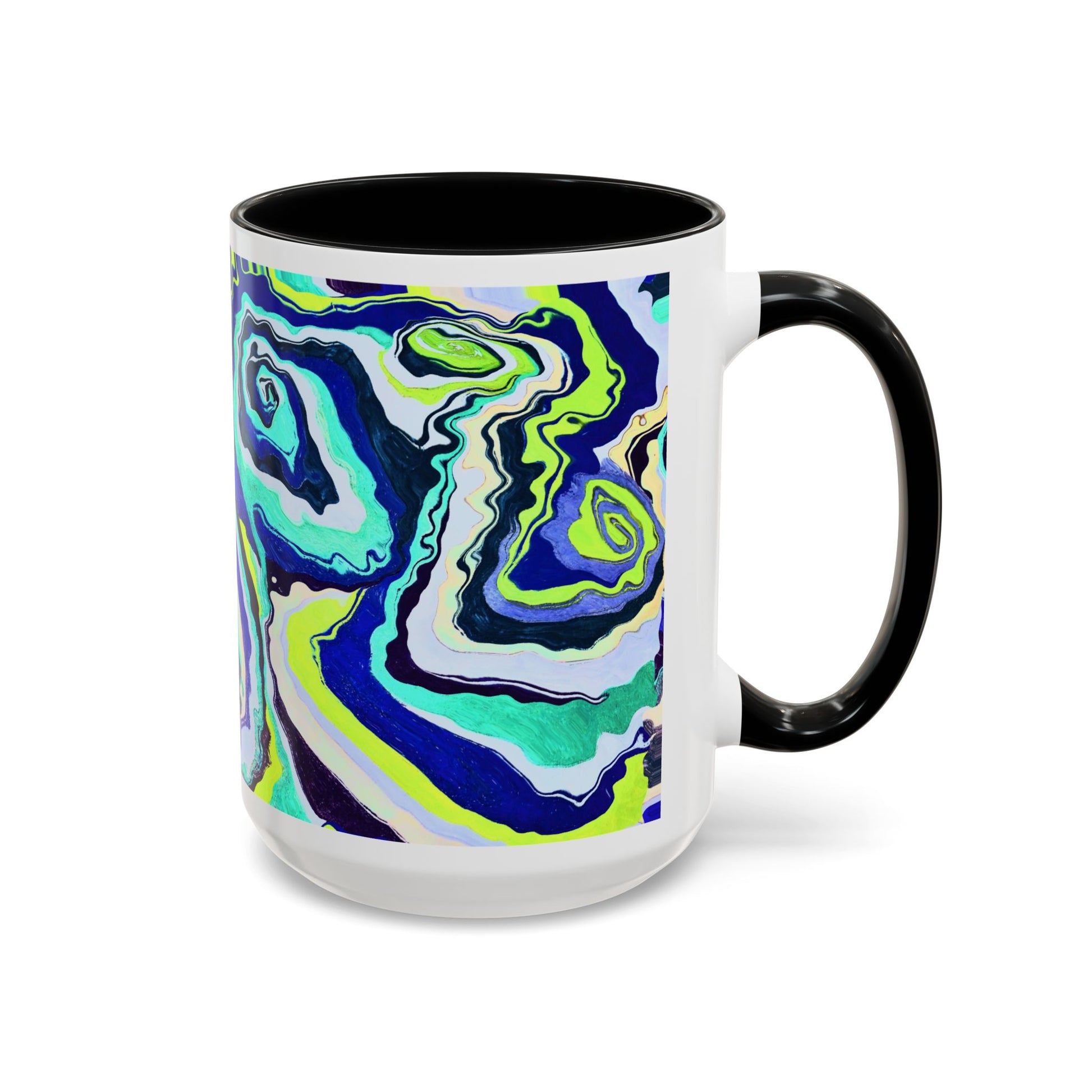This vibrant ceramic mug brings a rush of ocean-bright energy to quiet mornings and late-night creative sessions. Swirls of cobalt, aqua, lime, and deep indigo wrap around the glossy white exterior, while the contrasting black interior and handle give the design a bold frame. Hold it in hand and feel the rhythm of abstract waves — it’s the kind of mug that sparks conversation at the breakfast table, anchors your desk during marathon work sprints, or adds a pop of color to a pottery shelf. Durable, vivid, and comfortable to hold, it blends artful expression with everyday function.