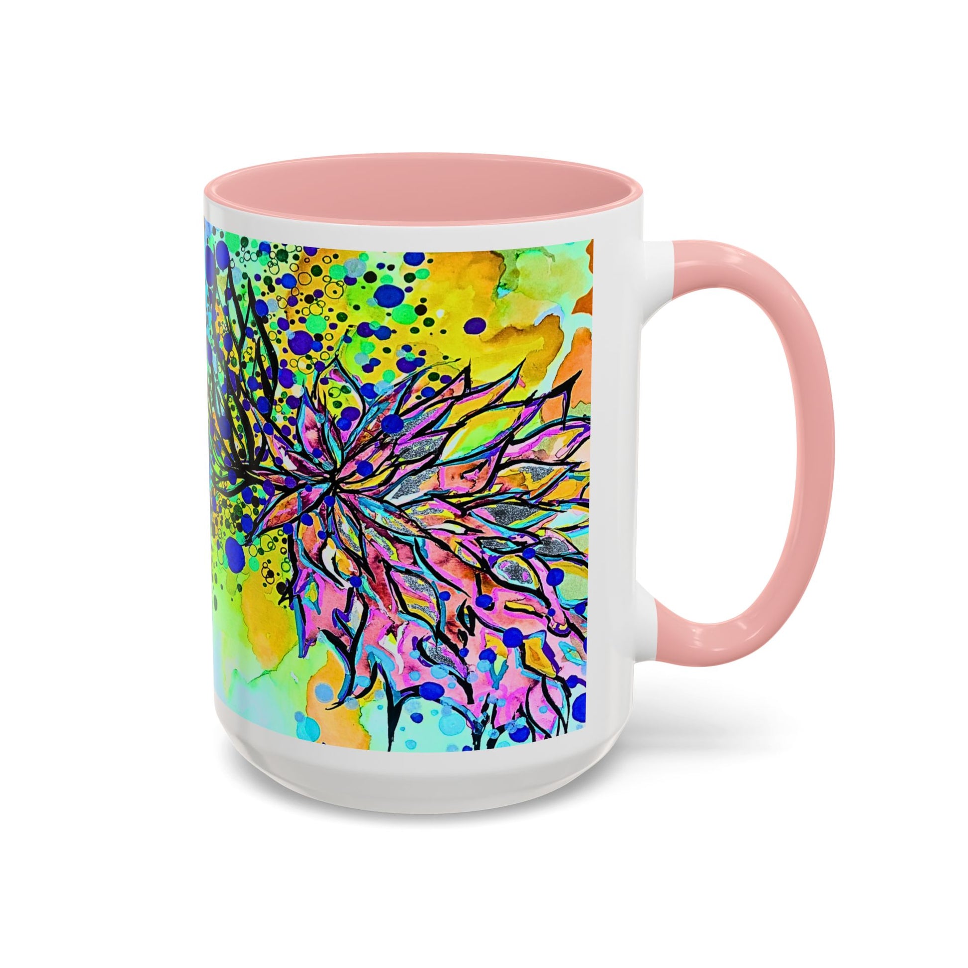 Artistic Floral Coffee Mug — Colorful Watercolor Mandala Accent Mug (11/15oz)