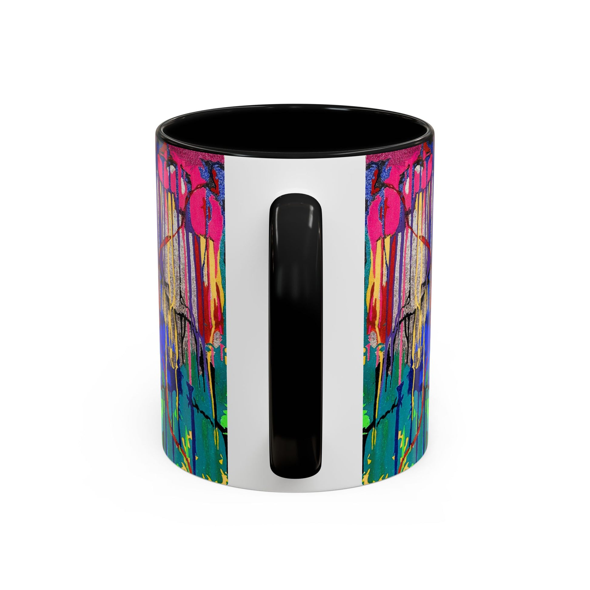 Bright, paint-splashed energy wrapped into a morning ritual. This ceramic mug wears a bold, abstract drip-paint design that reads like an artist’s sketchbook come to life — neon pinks and blues melting into greens with a rich black interior and handle that frame every sip. It feels playful and alive on the table, turning a quiet coffee break into a small, colorful celebration. Pop it on your desk while sketching, keep it by the easel between brush rinses, or bring it to weekend coffee-fueled planning sessions — the mug matches creative momentum and keeps your drink in view while your ideas flow.