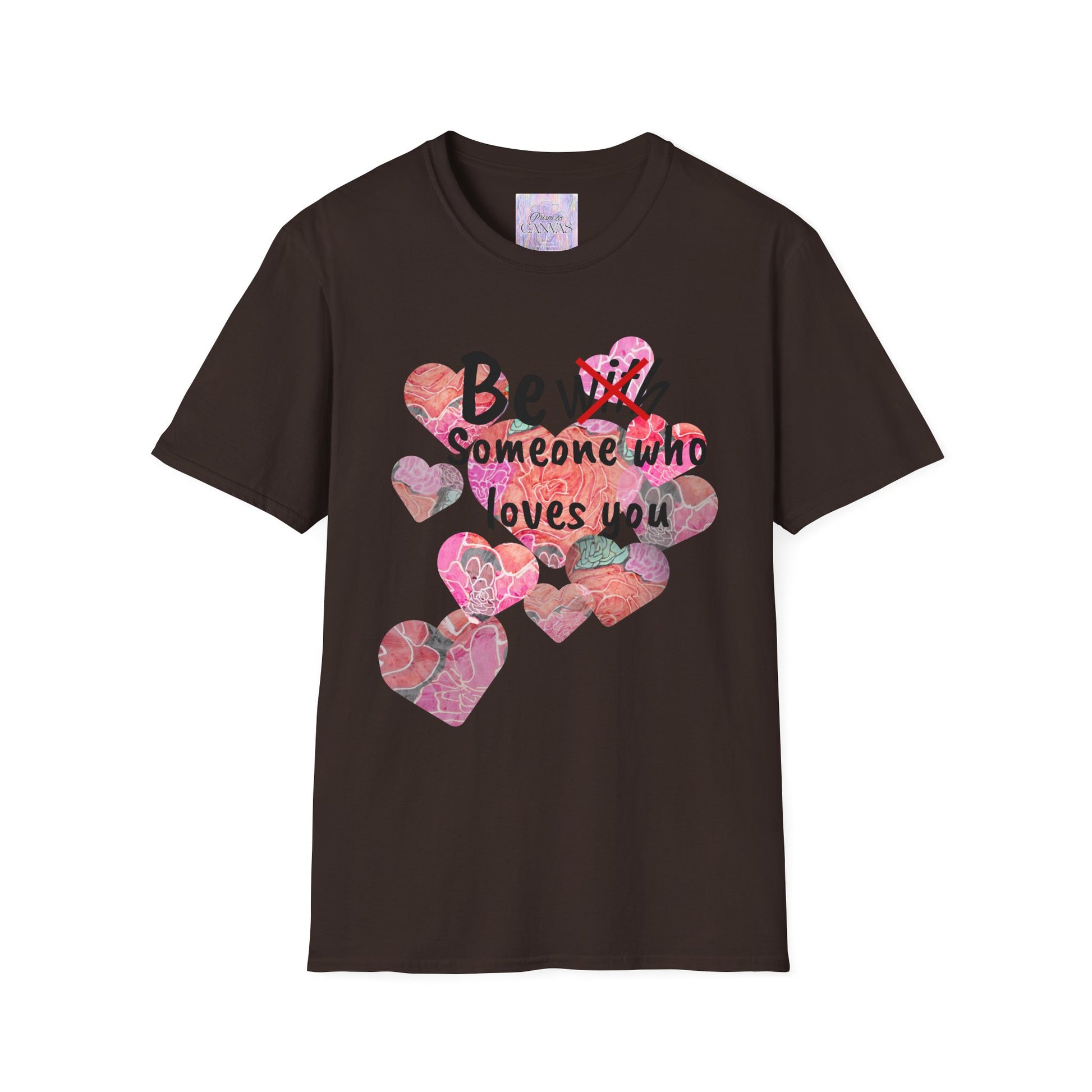 Soft, light, and honest — this cotton tee carries a hand-painted floral square and the gentle reminder: “Be with someone who makes you happy.” The colors are warm and saturated, with layered roses in reds, pinks and soft greens that pop against a clean white background. Wear it on slow mornings with coffee, at small gatherings, or tucked into jeans for a walk through town. The breathable ring-spun cotton and classic crew neck keep the silhouette timeless while the printed neck label and smooth fabric make it comfortably lived-in from the first wear. It feels like a quiet nudge toward joy you can keep close to your chest.