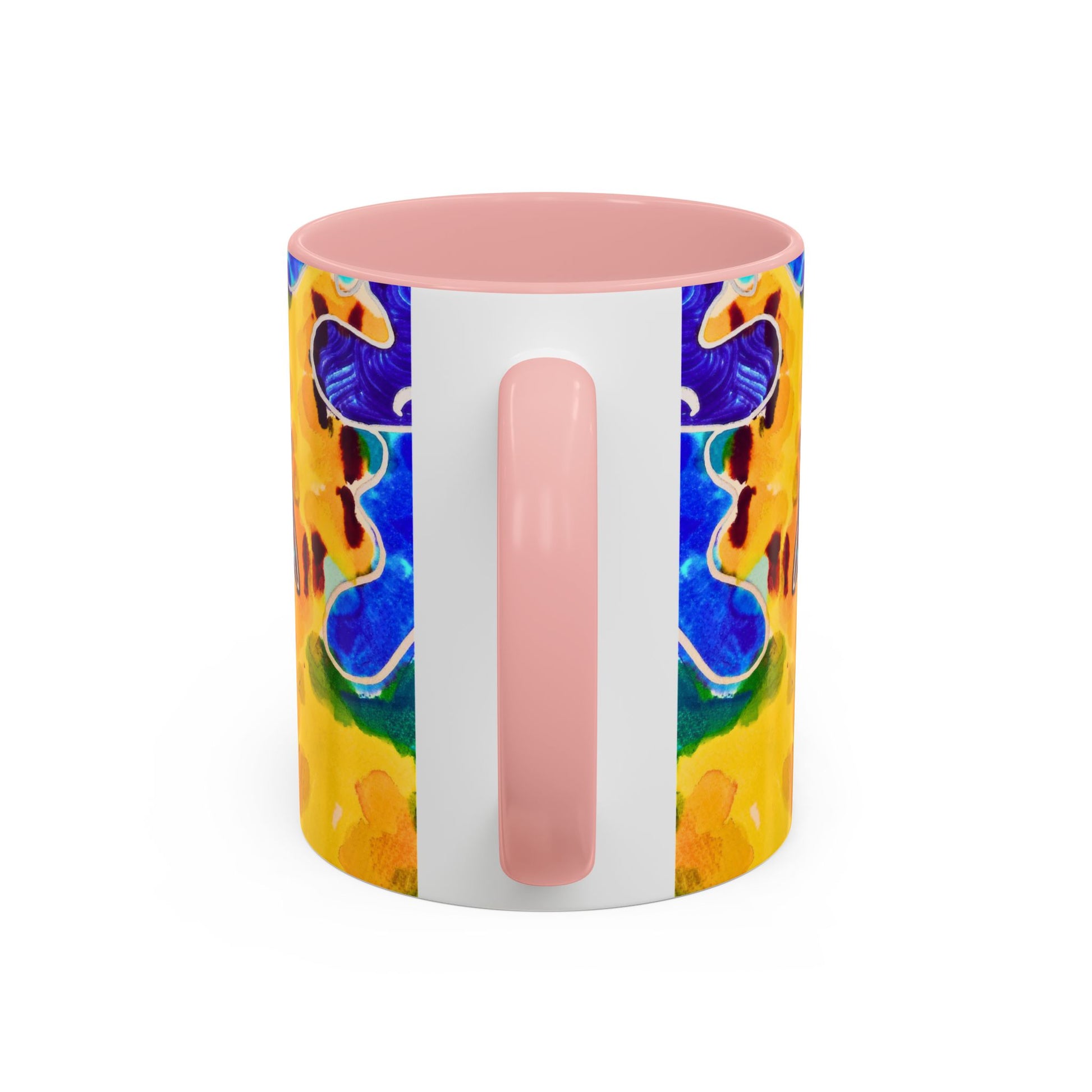 Bright, playful, and a little bit mystical — this ceramic mug brings a splash of wild color to slow mornings and creative afternoons. Glossy black interior and handle frame a psychedelic pattern of hand-painted shapes and tiny mushroom motifs, like a secret garden seen through a funhouse lens. It feels lively on the counter and comforting in the hand. Use it while sketching, journaling, or sharing stories with close friends; the color contrast nudges conversation and sparks curiosity. Durable ceramic, dishwasher- and microwave-safe construction means the art stays vivid through everyday use. For those who collect vibrant tableware or want a countertop piece that reflects a bold, artful personality, this mug blends practicality with whimsical energy.