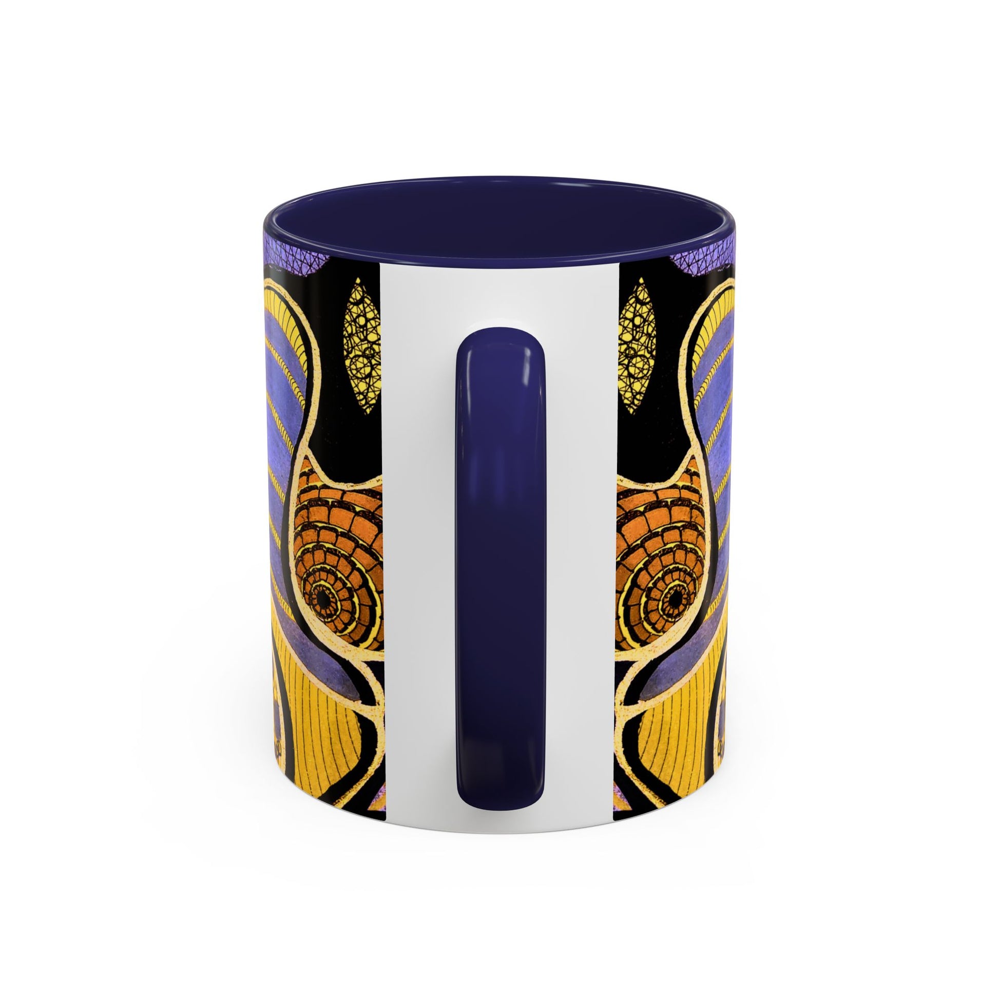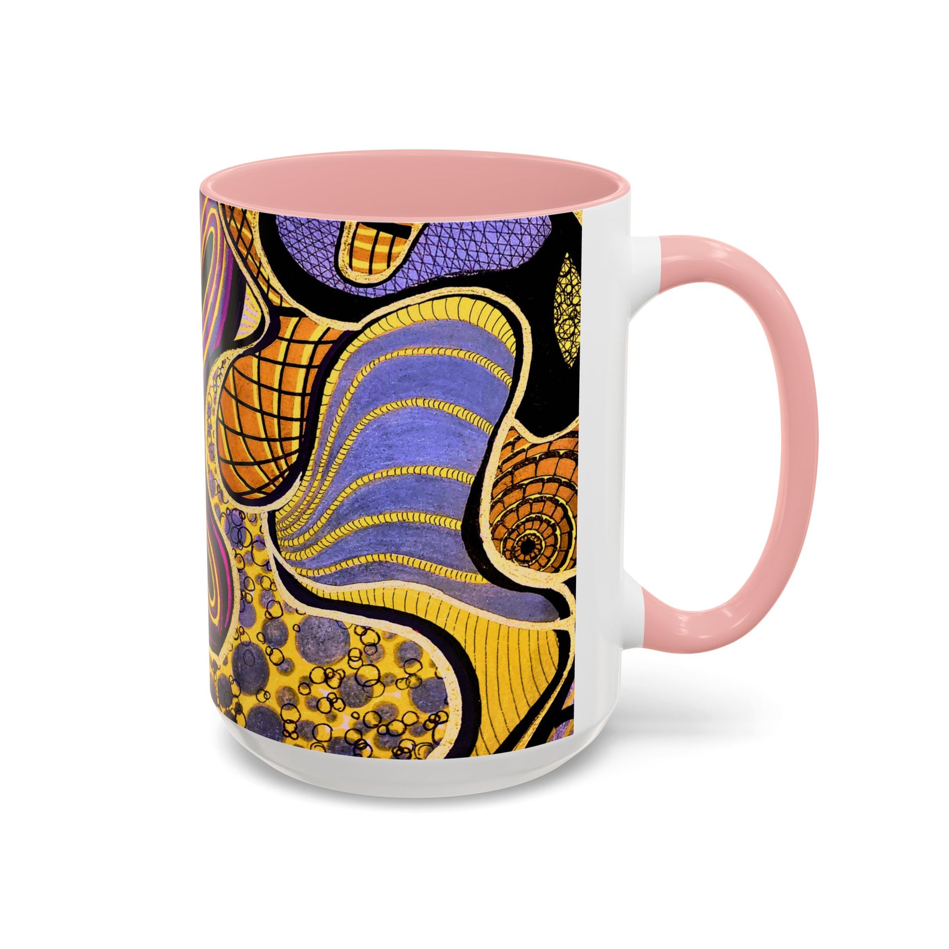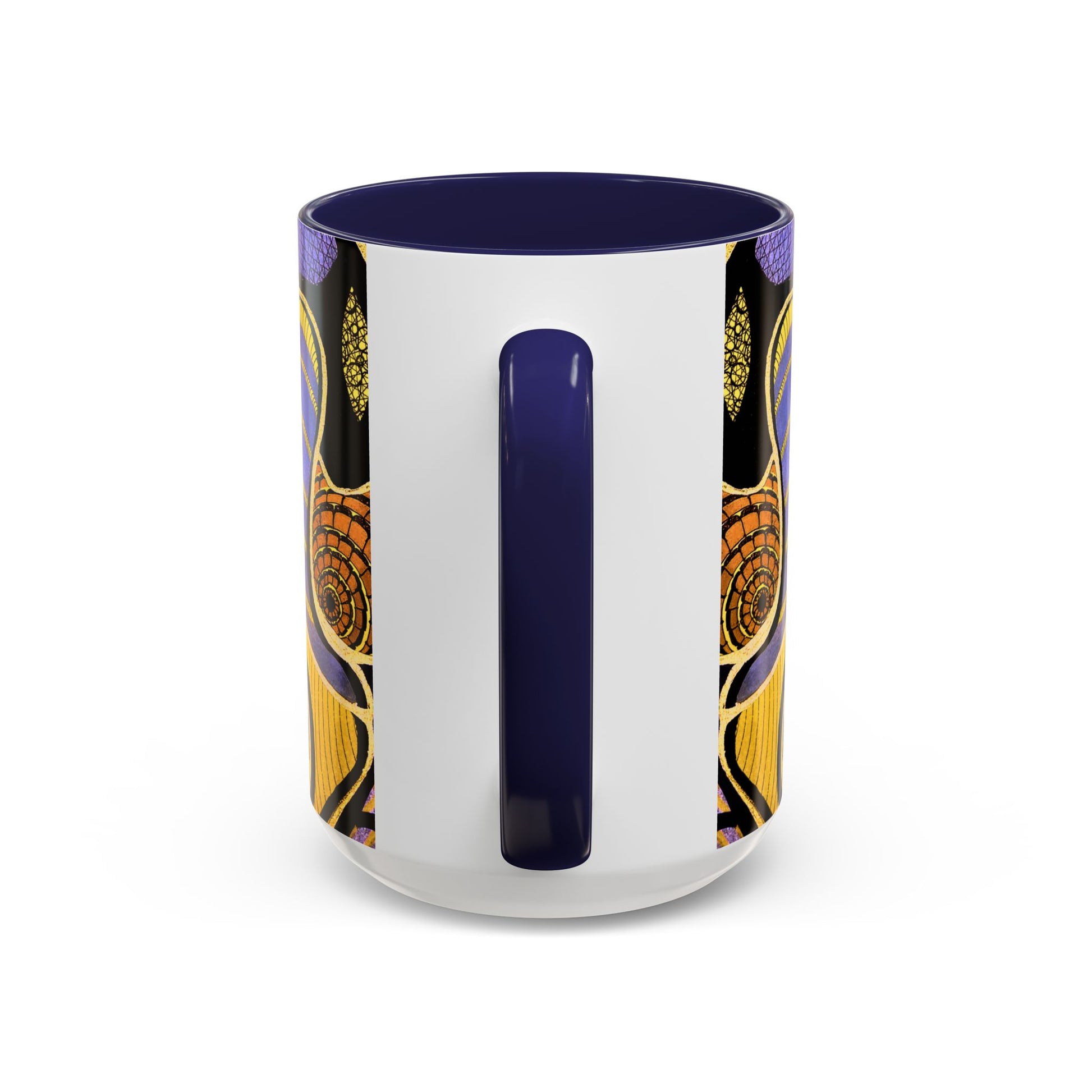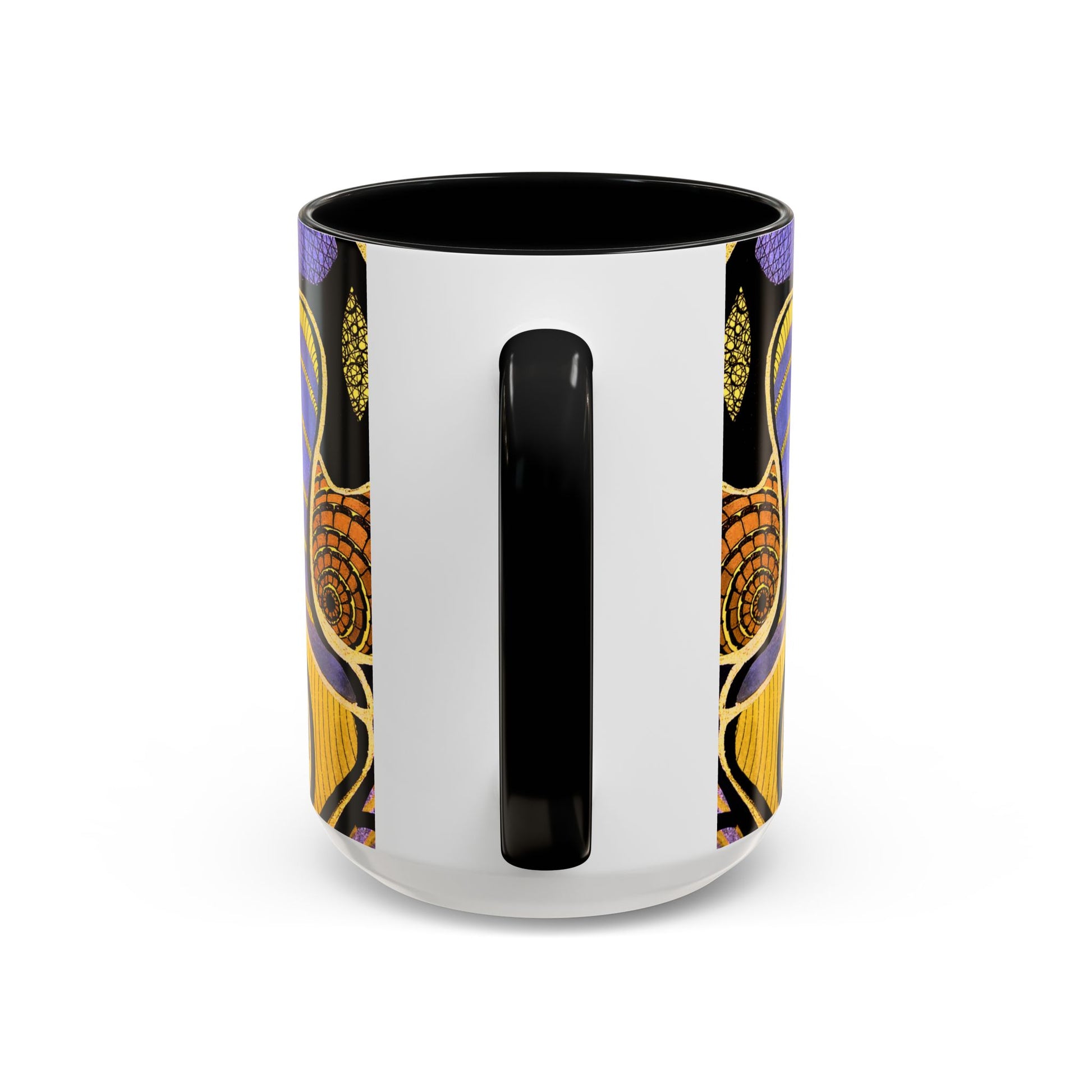 Psychedelic Seashells Accent Coffee Mug — Vibrant Purple & Gold Ocean Pattern (11/15oz)