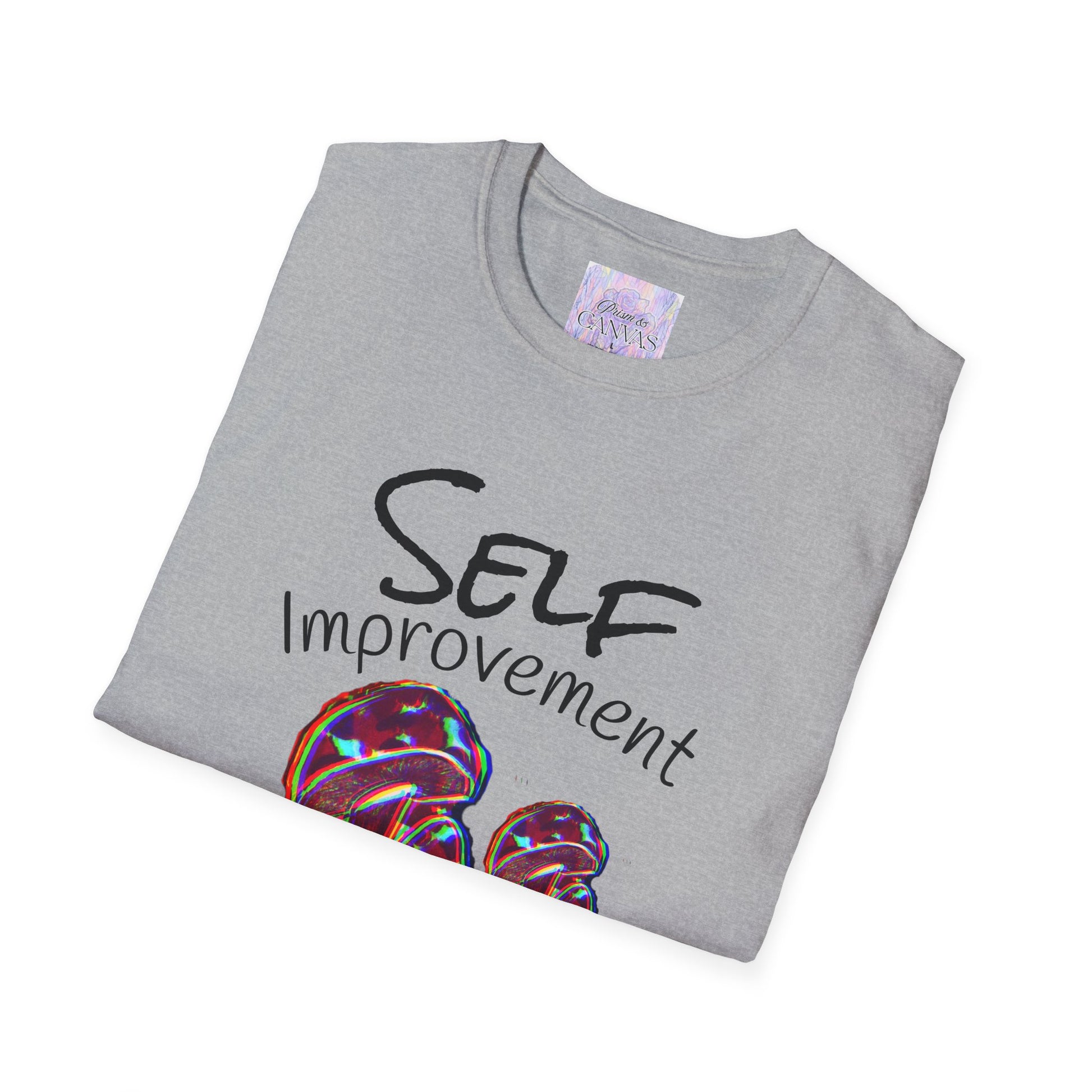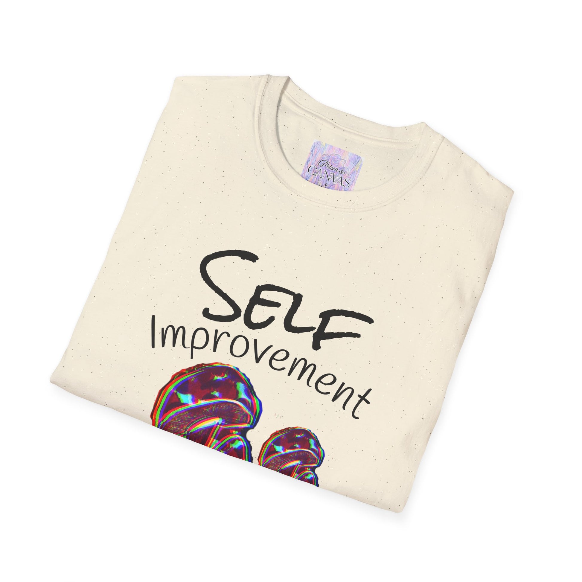 A lightweight, breathable tee that carries a quiet, hopeful message. Soft ring-spun cotton feels gentle against the skin while a hand-drawn mushroom motif and casually handwritten “Self Improvement” headline give this shirt a personal, artsy vibe. The front shows a small, thoughtful illustration; the back blooms into a colorful, painterly square that feels like a private mantra turned wearable art. Wear it on slow mornings with coffee, layered under a denim jacket between classes, or while sketching and journaling — it moves with you through small moments of change and creative practice.