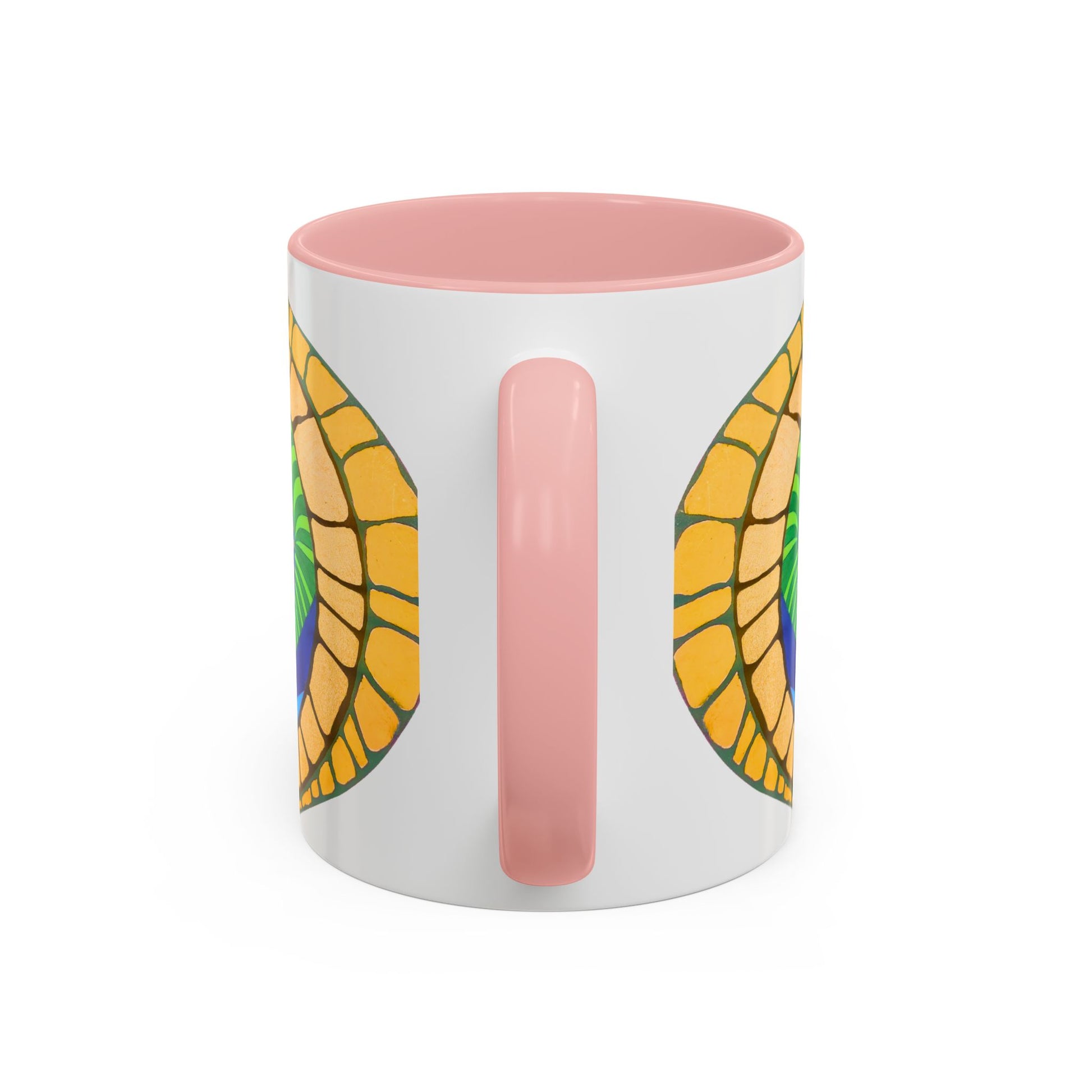 - White ceramic with colored interior and C-shaped handle (multiple colors)
