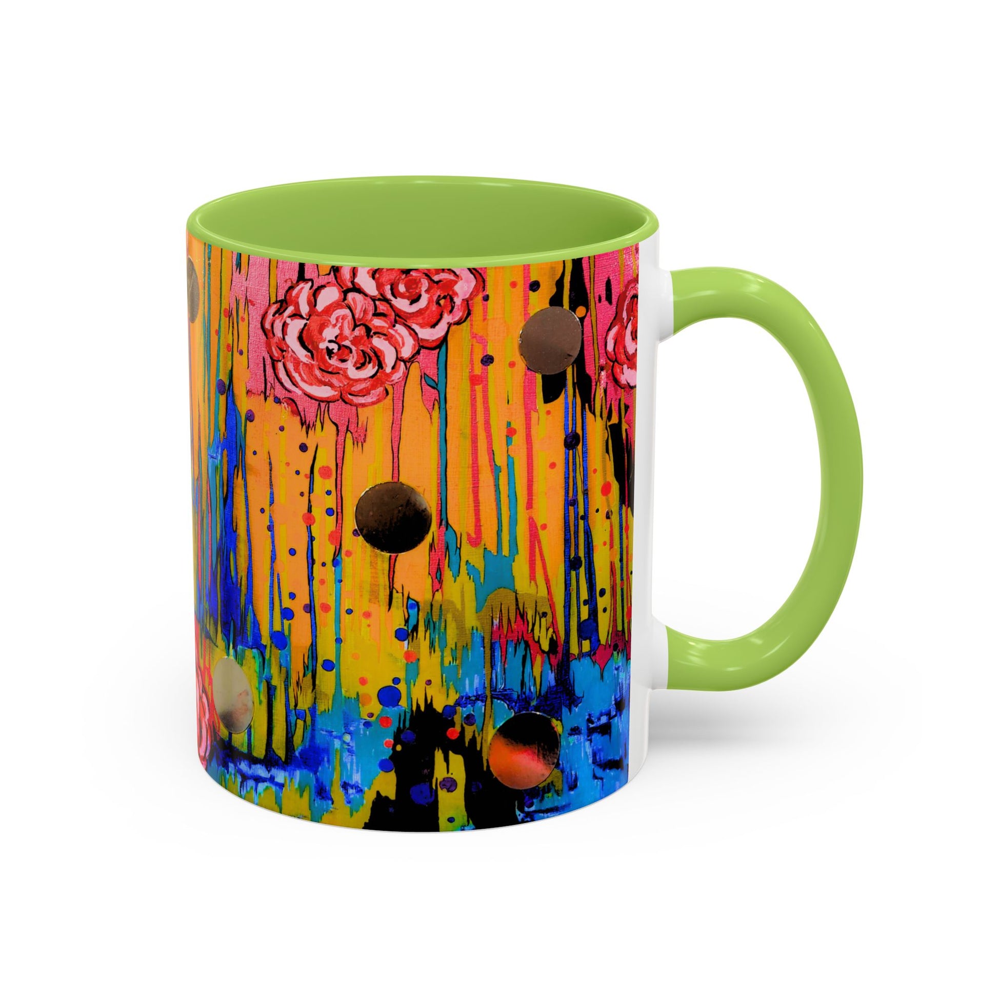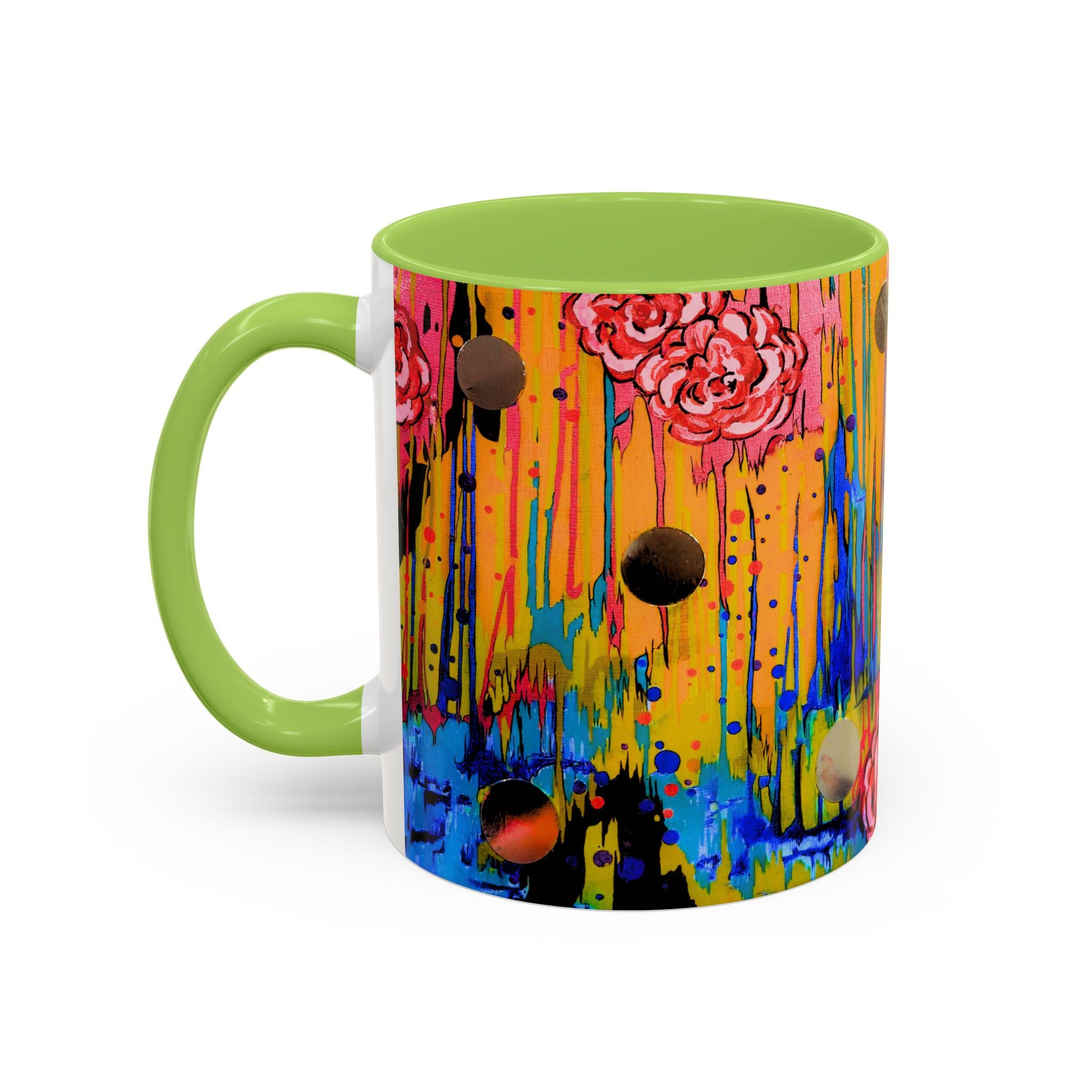 Vibrant Drip Floral Accent Coffee Mug — Colorful Abstract Roses (11/15 oz)