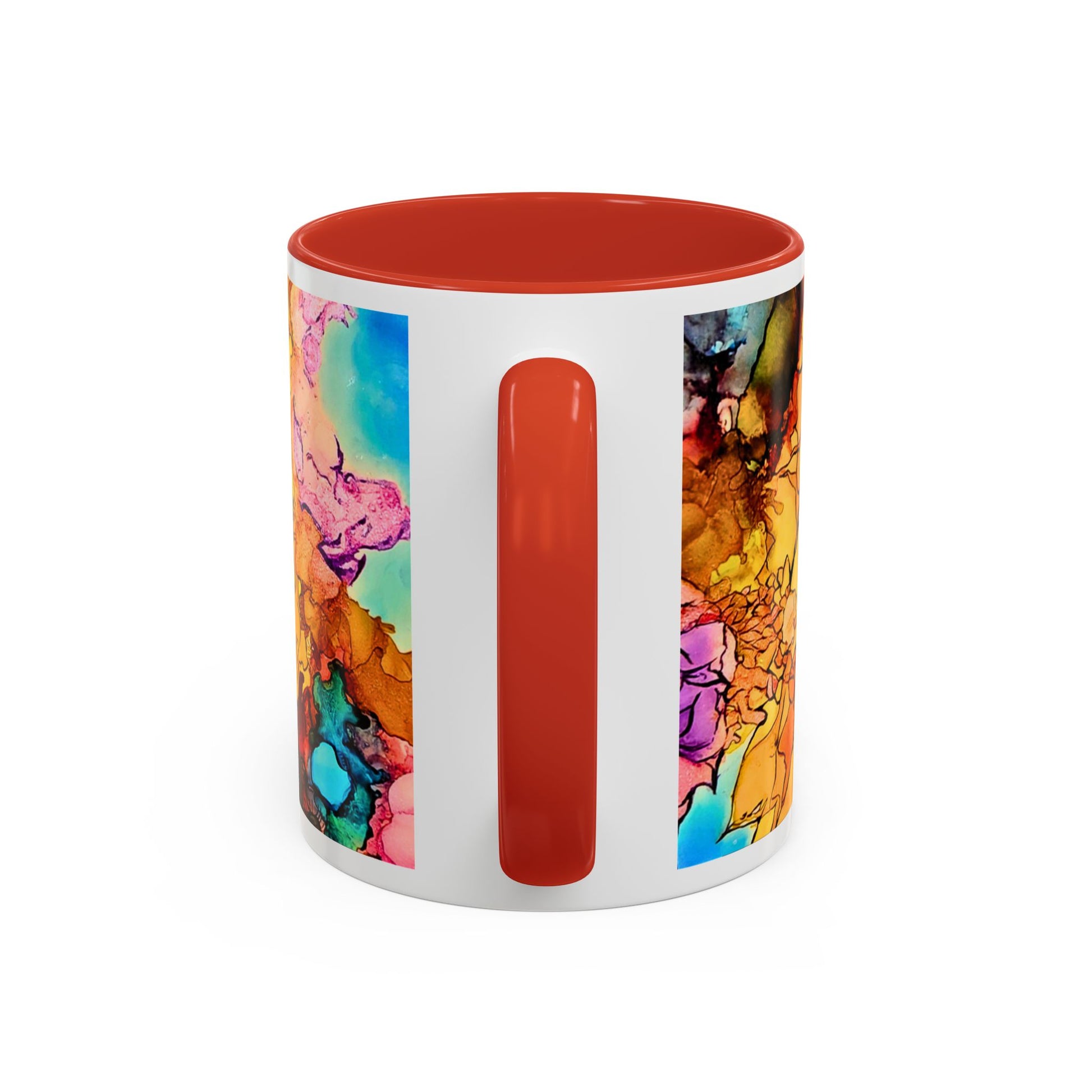 Bright, hand-painted energy captured in a cozy mug. This ceramic accent mug brings a burst of sunlit color to slow mornings and busy studio breaks alike. Warm golden swirls and painterly florals wrap around a glossy white body, contrasted by a bold colored interior and handle. It’s the kind of cup that sparks a smile when you reach for it—great for sipping coffee between sketches, holding a calming tea during an afternoon read, or anchoring a lively breakfast table. Lightweight but substantial, it feels familiar in your hand thanks to the classic C-handle and a comfortable rim. Dishwasher and microwave safe, this mug fits into everyday routines while adding a joyful pop to your kitchen or workspace.
